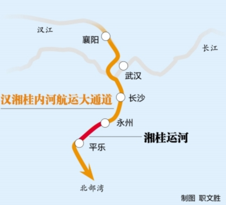 汉江 襄阳 长江 武汉 汉湘桂内河航运大通道 长沙 永州 湘桂运河 平乐 北部湾 制图 职文胜 汉江兴隆至蔡甸段2000吨级航道整治工程施工现场。 □ 长江日报记者刘海锋 通讯员潘庆芳 王华仙 刘振 近日,汉江兴隆至蔡甸段2000吨级航道整治工程TJ-01合同段正式通过交工验收。作为汉湘桂内河航运大通道湖北段首 个交工的标段,它的完工不仅意味着汉江通航能力大增,更标志着武汉乃至湖北正加速打破长期"只此一路出长江"的困局, 迈向"东出长江、南下北部湾"的水运双出海新时代。 ■ 打通南北水脉 武汉处于关键节点 要理解这个标段的重要性,得先看懂这条国家级的大通道。 在我国的交通版图中,长期以来水运主通道多是"东西走向",长江横贯东西。而正在建设的汉湘桂内河航运大通道,则 是一条纵贯南北的"水上高速公路"。它北起陕西安康,借汉江进入湖北,经武汉、岳阳、长沙,沿湘江南下,通过规划中的 湘桂运河接入广西西江水系,再经建设中的平陆运河直抵北部湾出海,成为纵贯南北的水上大动脉。 在这个宏大的十字交叉中,武汉处于承北启南的关键节点。然而,长期以来汉江下游航道水深不足、浅滩多,就像一 条宽阔公路上的"狭窄路段",限制了大型船舶的 ...