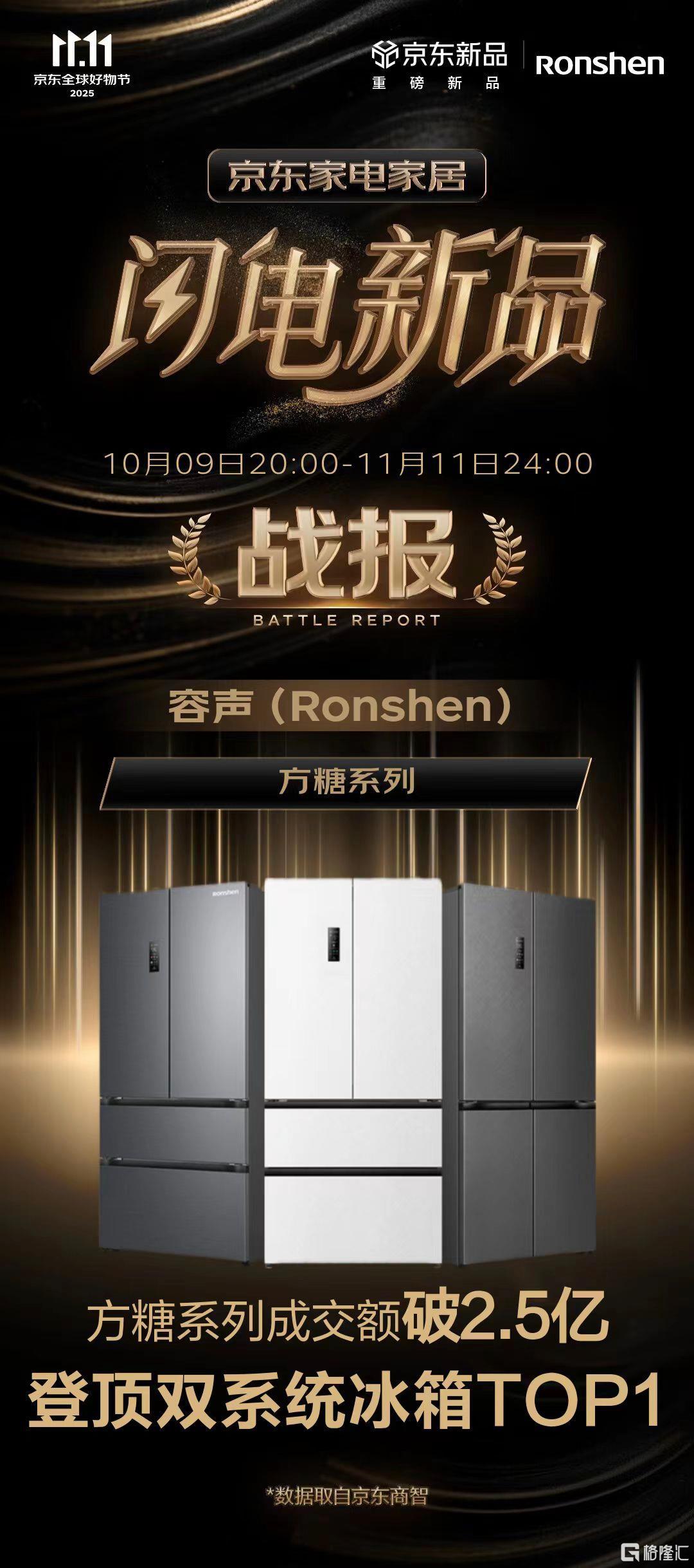 容声公布“双11”战报:容声方糖冰箱居双系统冰箱销售额首位