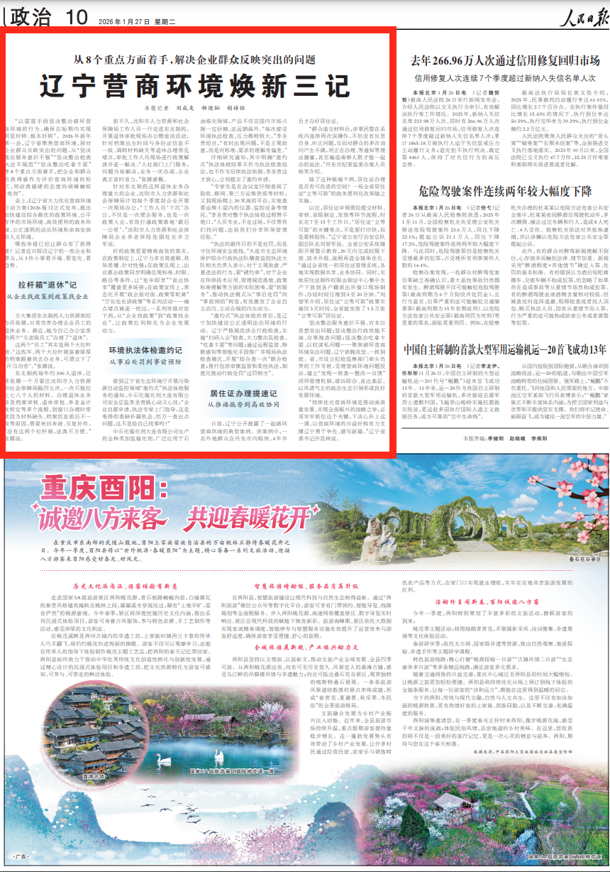 人民日报点赞辽宁:辽宁营商环境焕新三记