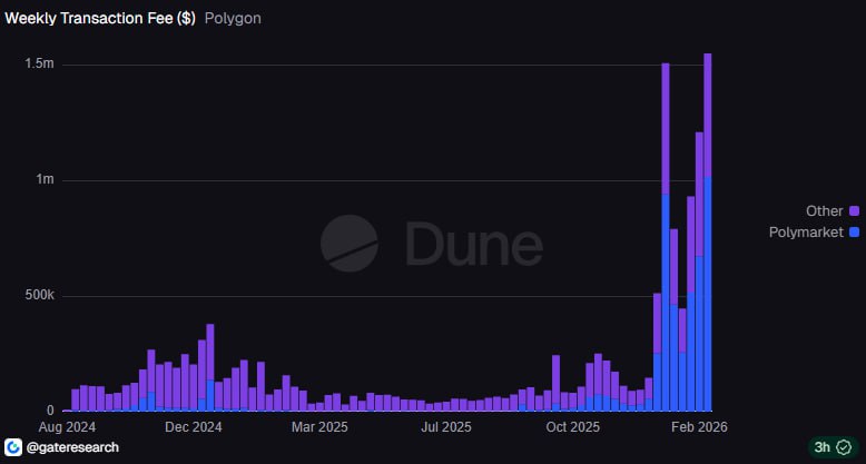 阅读原文 (来源:吴说) 吴说获悉,Polygon 在过去一周网络交易费用达 155 万美元,创下历史新高,同时为历史第二次单周费用超过 150 万美元,其中某预测市场为 Polygon 网络贡献了超过 100 万美元费用,占比约 66.5%。 ...