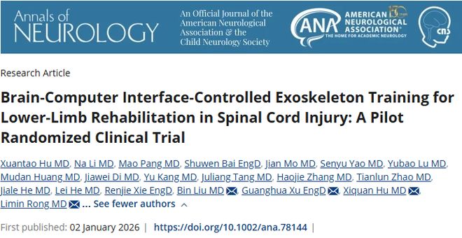 2025年,对于脑机接口相关临床应用的探索在全国多家医院开展,神经康复是其中一个热门领域。 脑机接口设备对康复效果究竟有什么样的影响,需要有严谨的科学研究来加以验证,近日,中山三院一 项随机对照临床研究给出了初步答案:脑机接口对比传统康复确实有显著的增强效果。 图1:脑控外骨骼机器人架构示意图 1月7日,南都N视频记者从中山三院脑病中心了解到,中山大学附属第三医院脑病中心戎利民、胡昔权 和刘斌教授团队联合西安交通大学徐光华教授团队在神经学领域顶刊Annals of Neurology(中科院一 区,TOP)发表了前瞻性随机对照临床研究成果,首次证实基于BCI(脑机接口)的外骨骼训练可显著 改善脊髓损伤患者下肢运动能力与抑郁情绪,并通过脑电(EEG)证据揭示其促进皮层重塑的机制,为 脊髓损伤后的神经功能恢复提供新路径。 在该项随机对照临床研究中,研究团队针对脊髓损伤(SCI)患者首次系统评估了脑机接口(BCI)控 制的下肢外骨骼训练在运动功能恢复与皮层可塑性重建中的双重作用。 研究初期结果表明,SCI患者即便处于恢复早期阶段,仍具备良好的神经接口适应性,其BCI控制精度 高达95.2%,反应时短至1.15秒,接 ...