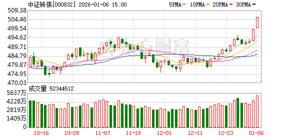 在A股市场持续走强并刷新10年新高的同时,中证转债指数今日也攀升走高,创下自2015年6月以来的 逾10年高点。 中证转债指数近期表现不仅延续了自2025年以来的强势格局,更凸显其在权益市场波动中"进可攻、退 可守"的独特价值。 中证转债指数刷新逾10年高点 不过,也有部分转债因正股价格下跌,引发转债价格大跌。今日,天创时尚股价下跌8.88%,天创转债 也下跌了8.13%。 正股表现驱动 中证转债指数上一次创历史新高需追溯至2015年6月,当时A股正处于牛市巅峰,沪指一度突破5178 点,可转债市场随正股大幅上涨,指数最高触及589.59点。不过,随着A股市场大幅回调,转债市场也 进行了深度调整,随后该指数长期低位徘徊。 2019年后,转债市场估值逐渐回升,并在2025年创出了10年新高,近期再次刷新了阶段性高点。 1月6日,在权益市场强势走高,并刷新10年新高的背景下,中证转债指数也大涨1.35%,报505.77点, 创2015年6月以来高点。 塞力转债连续两个交易日实现20%涨停,成为近期表现最为强势的可转债。塞力转债的强势表现直接受 益于正股塞力医疗的连续涨停。作为以"AI+医疗大数据"为核心的智慧医疗 ...