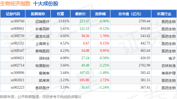 资金流向方面,生物经济(970038)指数成份股当日主力资金净流出合计5.99亿元,游资资金净流出合 计2.15亿元,散户资金净流入合计8.14亿元。成份股资金流向详情见下表: | 代码 | 名称 | 主力净流入(元) | 主力净占比 游资净流入 (元) | | 游资净占比 散户净流入 (元) | | 散户净占比 | | --- | --- | --- | --- | --- | --- | --- | --- | | 300759 | 康龙化成 | 7476.60万 | 11.46% | -2506.29万 | -3.84% | -4970.31万 | -7.62% | | 002007 | 华兰生物 | 4216.39万 | 13.34% | -863.12万 | -2.73% | -3353.28万 | -10.61% | | 300003 | 乐普医疗 | 4092.74万 | 7.71% | -874.61万 | -1.65% | -3218.14万 | -6.06% | | 002821 | 凯莱英 | 3886.74万 | 7.30% | -2241.41万 | -4.21% | -1645.3 ...