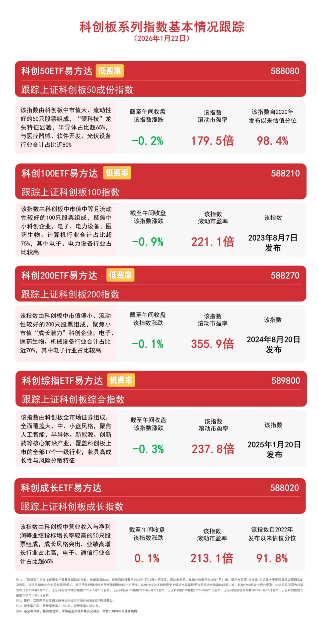 科创板系列指数高开低走,关注科创200ETF易方达(588270)、科创50ETF易方达(588080)等投资价值