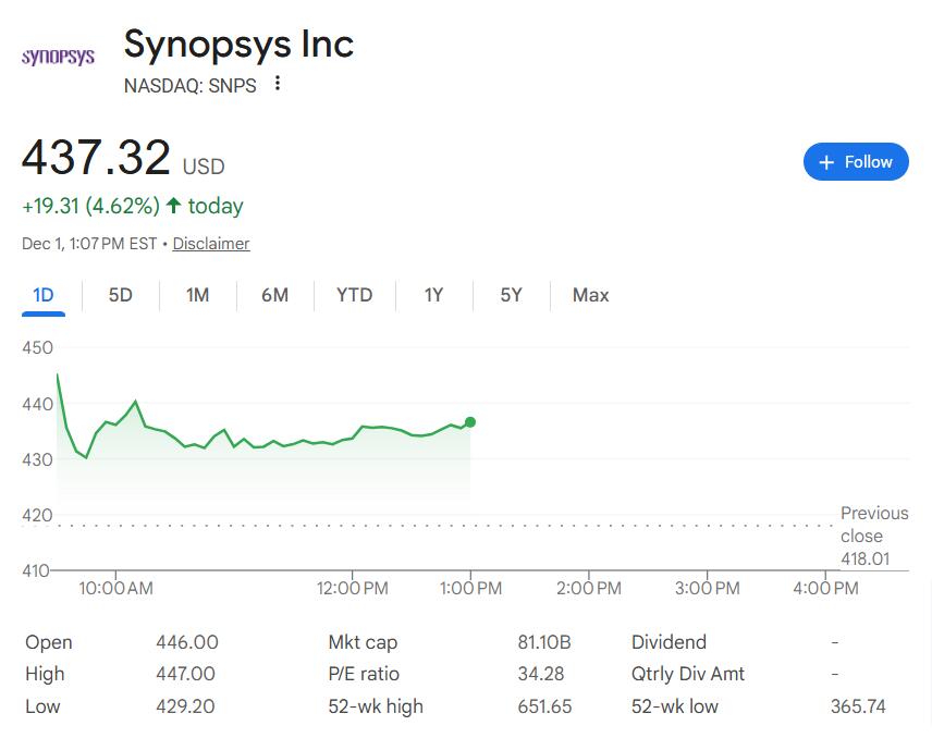 交易公告显示,新思科技"将使用英伟达的开发者工具套件和代码库,在芯片设计、物理验证和其他EDA流程的应用上展 开合作"。 英伟达又宣布重磅合作,这次是不同于类似投资OpenAI的那种令华尔街担忧的"AI闭环"交易。 美东时间12月1日周一美股盘前,英伟达与电子设计自动化(EDA)领域龙头企业新思科技(Synopsys)宣布达成战略合 作,英伟达将斥资20亿美元入股新思科技。双方将通过多年合作,把英伟达的人工智能(AI)计算技术深度整合到工业 设计与工程领域,重塑从芯片到系统的整个设计流程。 合作公布后,周一新思科技(SNPS)股价大涨,美股盘初一度涨超6.9%,午盘涨幅收窄至5%以内,势将连续三个交易日 收涨,刷新11月3日以来收盘高位,将今年以来的累计跌幅收窄到10%左右。英伟达股价盘初曾跌近1.9%,但随后迅速转 涨并保持涨势,午盘刷新日高时日内涨近1.9%。 上述合作相关的投资将使英伟达成为新思科技的第七大股东,持股比例为2.6%。在近期AI领域频现内部循环性交易引发 市场担忧之际,英伟达CEO黄仁勋明确表示,与新思科技的合作并非排他性协议,也不涉及采购英伟达芯片的条款。换言 之,即使英伟达入股,性质也 ...