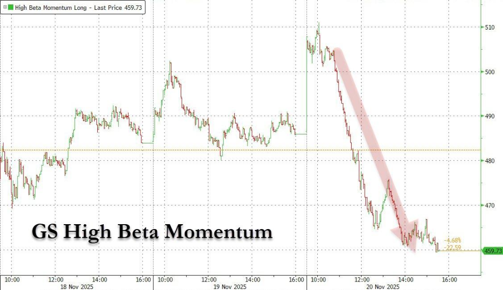 无论从哪个角度来看,英伟达的财报和评论都是积极的。正如高盛顶级交易员Ryan Sharkey所指出的那样:真正的好消息没有得到相应的回报, 通常是一个不好的信号。 周四,英伟达开盘一度大涨5%至196美元,但随后大幅跳水,收盘时跌幅近3%至180.98美元,日内累计跌幅达7%,创下10月22日以来最低收盘 价。这一剧烈逆转直接拖累标普500指数暴跌约3%。 高盛副总裁Ryan Sharkey在盘中报告中指出: 美股尽管有很多催化因素需要消化,但标普500指数约3%的逆转明显由英伟达约7%的逆转驱动,这显然打压了年底反弹的情绪。 数据显示,12个月内涨幅最大的股票下跌4.4%,散户青睐股下跌3.6%,高估值软件股下跌2.3%。 (12个月内涨幅最大的股票下跌4.4%) 22V Research团队在周四的报告中写道: 即使是英伟达乐观的财报也不足以扭转近期的市场逆风。过去两周,市场内部一直倾向于风险规避,低波动性股票在各种市值中占据 主导地位。 这一趋势在周四继续,风险资产遭遇重创,标普500指数下跌1.6%,纳斯达克跌2.2%,而防御性股票则受到沃尔玛强劲财报提振。 技术面与流动性危机并发 高盛在其技术分析清 ...