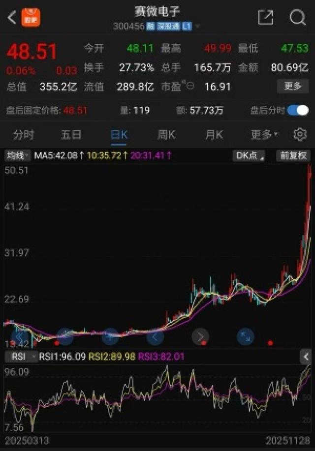 势脱颖而出,年内股价累计上涨超过180%,11月以来涨幅接近100%,成为板块领涨标杆。 作为全球领先的高端集成电路芯片晶圆制造商,赛微电子以MEMS业务为核心,2024年该板块营收占比 超八成,同时持续加码研发,手握百余项专利及软件著作权,为技术落地筑牢根基。尽管公司业绩存在 短期波动,2024年归母净利润出现亏损,但2025年前三季度已实现扭亏为盈,经营性现金流保持韧性。 在产业国产化浪潮下,赛微电子近期抛出战略布局,拟以不超过6000万元收购光刻机企业芯东来部分股 权,通过绑定上游核心设备资源,夯实产业链安全,降低运营成本。这场技术驱动与战略布局的双重发 力,既折射出CPO行业在政策红利与需求爆发下的高景气度,也展现了企业在半导体自主可控赛道上的 探索与突破,其长期发展潜力值得持续关注。 CPO概念股大爆发 近期,随着AI算力需求的爆发式增长,CPO(共封装光学)作为解决高速互联瓶颈的关键技术,引发资 本市场强烈追捧。 赛微电子年内股价走势图 本报(chinatimes.net.cn)记者谢碧鹭 北京报道 随着AI算力需求的爆发式增长,CPO概念受到了资本市场的追捧。截至11月28日收盘,CPO概念板块 ...