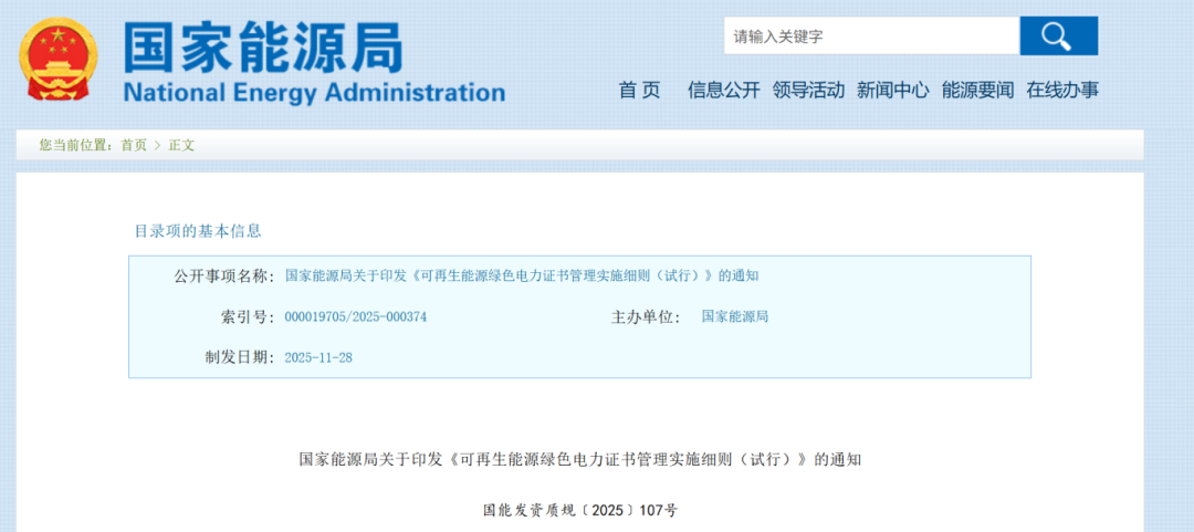 国家能源局:2025年11月核发绿证2.58亿个 涉及可再生能源发电项目50.97万个