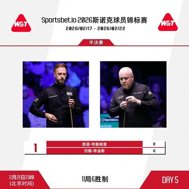 来源:央视新闻客户端 Sportsbet.io 2026斯诺克球员锦标赛 2026102/17 - 2026/02/22 昨天(2月20日),在2026斯诺克球员锦标赛1/4决赛中,赵心童6-3击败肖恩·墨菲,成功晋级四强! 上半场两人2-2战平,休息归来后赵心童状态火热并连续轰出高分,以5-2拿到赛点,此后墨菲扳回一个 赛点,但第九局中赵心童再次轰出118分拿下比赛。 北京时间次日3点,下半区:赵心童 vs 马克·艾伦 全场比赛,赵心童打出两杆破百(142、118)和三杆50+(67、66、95),肖恩·墨菲打出单杆66分和77 分。 2026斯诺克球员锦标赛四强选手分别为:赵心童、约翰·希金斯、贾德·特鲁姆普、马克·艾伦。 2026斯诺克球员锦标赛半决赛将在今晚打响!具体赛程如下↓ 北京时间21点,上半区:约翰·希金斯 vs 贾德·特鲁姆普 半决赛 0 赵心童 I 马克·艾伦 0 DAY 5 2月22日3:00 11局6胜制 (北京时间) ...
