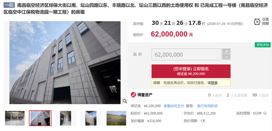 近日,从阿里拍卖平台了解到,南昌临空经济区综保大街以南、坛山四路以东、丰瑞路以北、坛山三路以西的土地使用权 和 已完成工程一号楼(南昌临 空经济区临空中江保税物流园一期工程)的房屋正式挂牌转让。 该项目标的物所有人为江西临空中江实业发展有限公司,拍卖标的为土地使用权和已完成工程一号楼(南昌临空经济区临空中江保税物流园一期工程)的 房屋;土地权证编号:赣(2017)南昌市不动产权第0075671号;房屋面积:11578.71㎡、土地面积:41515.1㎡。 从区位看,标的物位于南昌临空经济区综保大街以南、坛山四路以东、丰瑞路以北、坛山三路以西。 你觉得该项目最终能成功拍出吗? 文章由洪城时刻新媒体平台编辑 有什么不同的意见或者是觉得文章中有失实的 欢迎在下方评论,等你来撩 ...