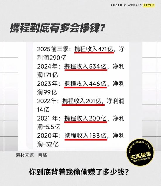 专题:携程被市场监管总局立案调查 炒股就看金麒麟分析师研报,权威,专业,及时,全面,助您挖掘潜力主题机会! 来源:Hacking黑白红 65亿是如何算出来的呢? 律师根据反垄断法测算,如果查实,携程可能面临上一年度营业额1%到10%的罚款。按2025年的营收 650亿算,最高能到65亿。目前监管总局已经进驻上海总部调查,这波估计是要动真格的。 65亿是真肉疼。很多大厂一年的净利润都没这么多,这一张罚单下去,几年白干。 但对于携程来说,似乎不是什么大数字。 公开信信息 继阿里182亿、美团34亿、滴滴80亿后, 携程或面临49 - 65亿罚款,数额比美团还高,这让人意外。 携程2025年前三季,收入471亿元,净利润290亿,预计全年总利润应该在350亿以上。 看看上图的数据 就像有用户反映,去年被携程频繁打电话推销贷款产品,不胜其烦。 罚款不是目的,拆解才是。这种天价罚单通常伴随着业务大整改,那些灰色地带的收入以后别想了。 携程看似低调,实则"能量"不小,市场普遍认为,后续高额罚款是对携程垄断行为的警示, 也有网友爆料: 携程被罚,不只是杀熟那么简单 甚至涉及洗钱、诈骗 市场需要公平竞争环境。 81%的毛利、 ...