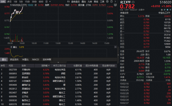 锂电、磷化工齐头并进,化工ETF(516020)盘中涨超1%!超50亿主力资金狂买
