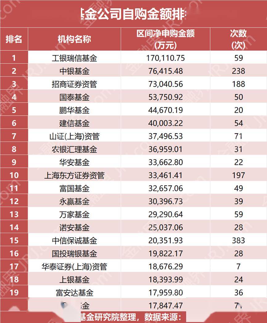 近日,《基金管理公司绩效考核管理指引(征求意见稿)》在公募圈掀起波澜。 这份《指引》不仅对基金经理和销售人员的薪酬与业绩挂钩作出规定,还着重强调了自购,高管和基金经理都得拿出真金 白银买自家基金,这无疑给公募行业带来了新变化。 | 排名 | 机构名称 | 区间净申购金额 | | | --- | --- | --- | --- | | | | (0776) | | | 10 | 工银瑞信基金 | 170,110.75 | ਟਰ | | 2 | 中银基金 | 76,415.48 | 238 | | B | 招商证券资管 | 73,040.56 | 188 | | 4 | 国泰县金 | 53,750.92 | 50 | | 5 | 鹏华基金 | 44,670.19 | 20 | | 6 | 建信县金 | 40,003.22 | 54 | | 7 | 山证(上海)资管 | 37,496.53 | 71 | | 8 | 农银汇理基金 | 36,959.01 | 31 | | 9 | 华安基金 | 33,662.80 | 22 | | 10 | 上海东方证券资管 | 33,461.41 | 197 | | (11) | ...