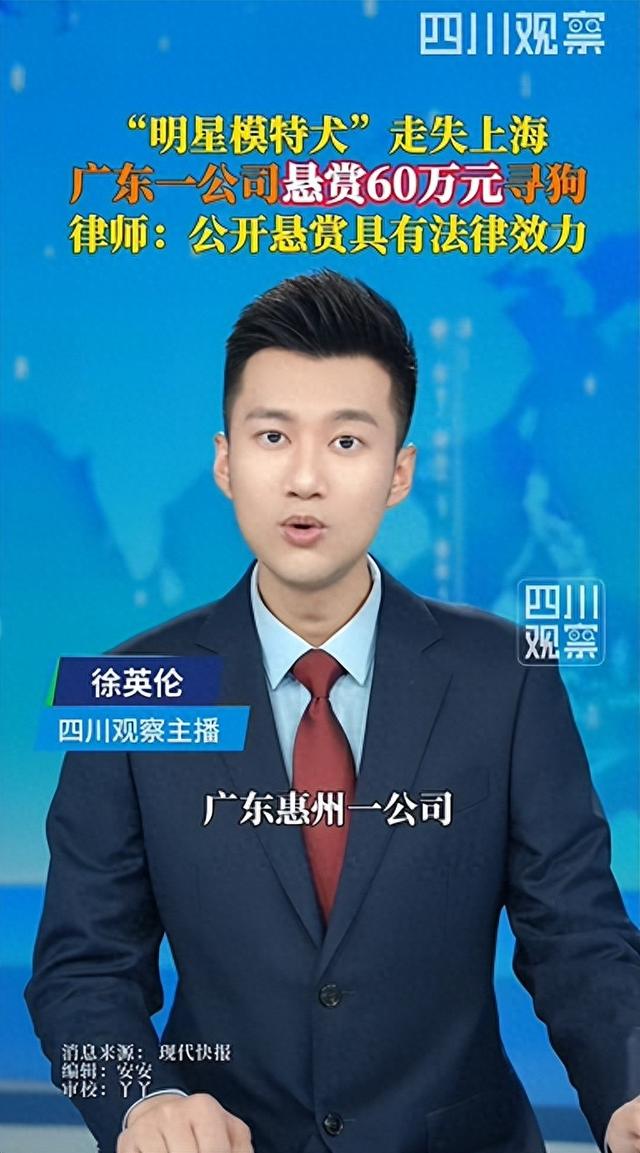 广东一公司发帖“悬赏60万寻狗”,公司负责人称“赏金一定兑现”:狗本身价值较高,60万并非难以承受
