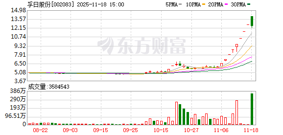 北京商报讯(记者 马换换 王蔓蕾)11月17日,孚日股份(002083)开盘再度涨停,斩获八连板。 交易行情显示,11月17日,孚日股份开盘涨停,开于涨停价12.72元/股。拉长时间线来看,11月6日—11 月17日这8个交易日内,公司股价接连斩获8个涨停,区间累计涨幅114.5%。 11月16日晚间,孚日股份披露股价异常波动公告显示,2025年前三季度,公司净利润2.96亿元,同比下 降12.05%,其中,公司子公司山东孚日新能源材料有限公司(以下简称"孚日新能源")前三季度净利润 亏损约3032万元,由于下游锂电行业的恢复仍面临着不确定性,孚日新能源仍然面临亏损的风险。孚日 新能源目前暂无扩产计划,对公司其他业务布局不产生重大影响。 ...