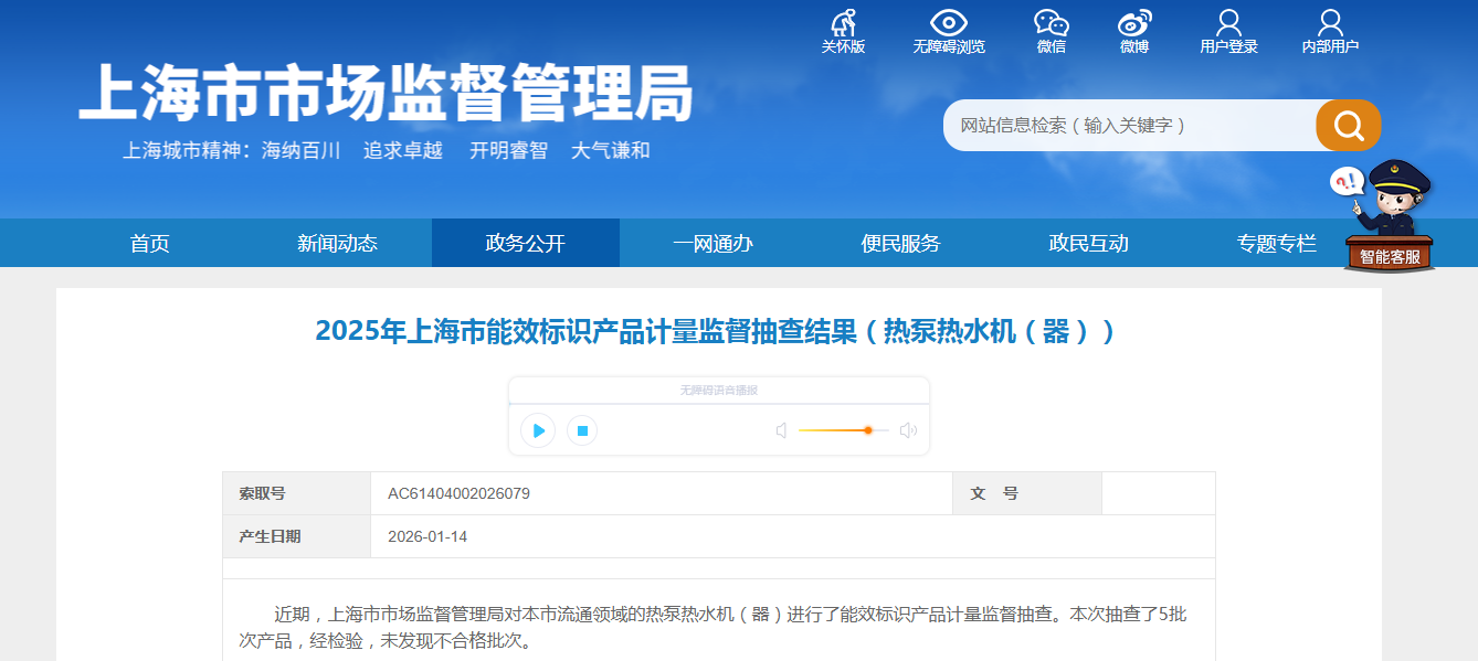 2025年上海市能效标识产品计量监督抽查结果(热泵热水机(器))公布