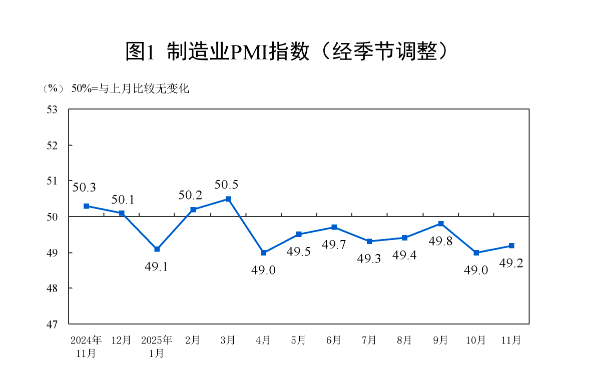 国家统计局:11月份制造业PMI为49.2%,经济景气水平总体平稳