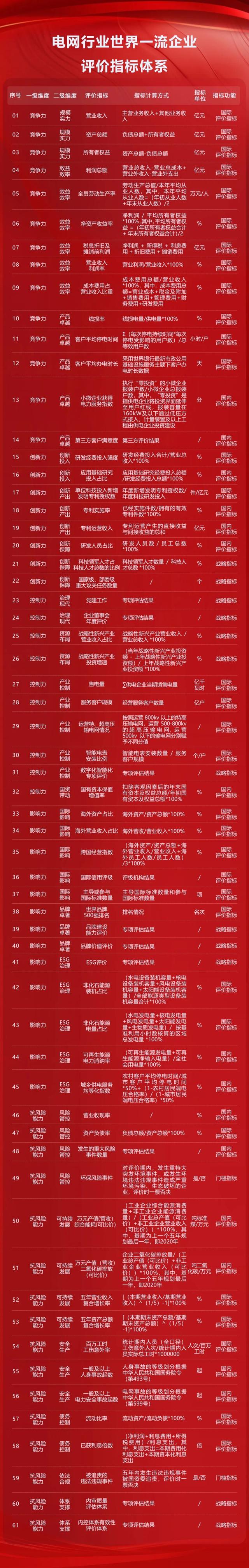 目前,已公布的指标体系涵盖电网、油气勘探开发、发电、通信、汽车、冶金、航空、矿业、装备制 造、航运、建筑、石油炼化、医药、建材、物流、检验检测等16个行业。 基于已形成的16个行业评价指标体系,以2024年度数据为基础,中国企联对16个行业企业开展了世界一 流企业建设评估。从总体结果看,中央企业建设世界一流的步伐更加坚实有力。 在45家参评中央企业中,包括中国石油、中国石化、中国海油、国家电网、南方电网、中国三峡集团、 国家能源集团、中国移动、中国宝武、中国远洋海运、中国建筑、中国中车集团、中交集团在内的13家 企业位居行业第一梯队,在综合排名中居于前列。 登录新浪财经APP 搜索【信披】查看更多考评等级 转自:北京日报客户端 国有企业16个行业世界一流企业评价指标体系发布 2024年11月,在第七届中国企业论坛"'标'杆引领 '准'则护航 加快建设更多世界一流企业"平行论坛上, 中国企业联合会发布了国有企业首批11个行业世界一流企业评价指标体系。 2025年11月,在第八届中国企业论坛"以评促建,加快建设更多世界一流企业"平行论坛上,中国企业联 合会进一步发布了国有企业第二批5个行业世界一流企业评价指标体系 ...