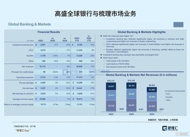 2026年度格隆汇"全球视野"十大核心资产已正式发布,高盛(GS.US)经过层层选举和PK最终被入选成 为"全球视野"十大核心资产中金融行业代表标的。 以下是关于高盛公司的入选原因和分析逻辑: 当全球货币政策逐步转向宽松、资本市场活动回暖,投行行业正迎来复苏与结构调整的关键期。高盛 (GS.US)历经2022-2024年的战略纠偏,果断退出大众零售银行"Marcus"业务,重新聚焦核心优势领 域——全球银行与市场业务(GBM)及资产与财富管理业务(AWM),凭借清晰的战略定位与深厚的 行业积累,成为2026年全球核心资产的重要标的。 2025年前三季度,高盛经营数据表现稳健:营收同比增长13%,稀释后EPS同比增速30%,ROE提升至 14.6%,较上年增加2.6个百分点。随着消费金融业务包袱逐步出清,公司盈利能力持续改善,估值体系 正从传统周期投行向高质量增长标的缓慢切换,其在降息周期中的业绩弹性值得关注。 来源:格隆汇APP 行业竞争格局方面,巴塞尔协议III(BaselIIIEndgame)资本金要求趋严,中小投行面临更大的资本压 力,行业资源进一步向头部集中。高盛通过优化风险加权资产(RWA)、聚焦高 ...