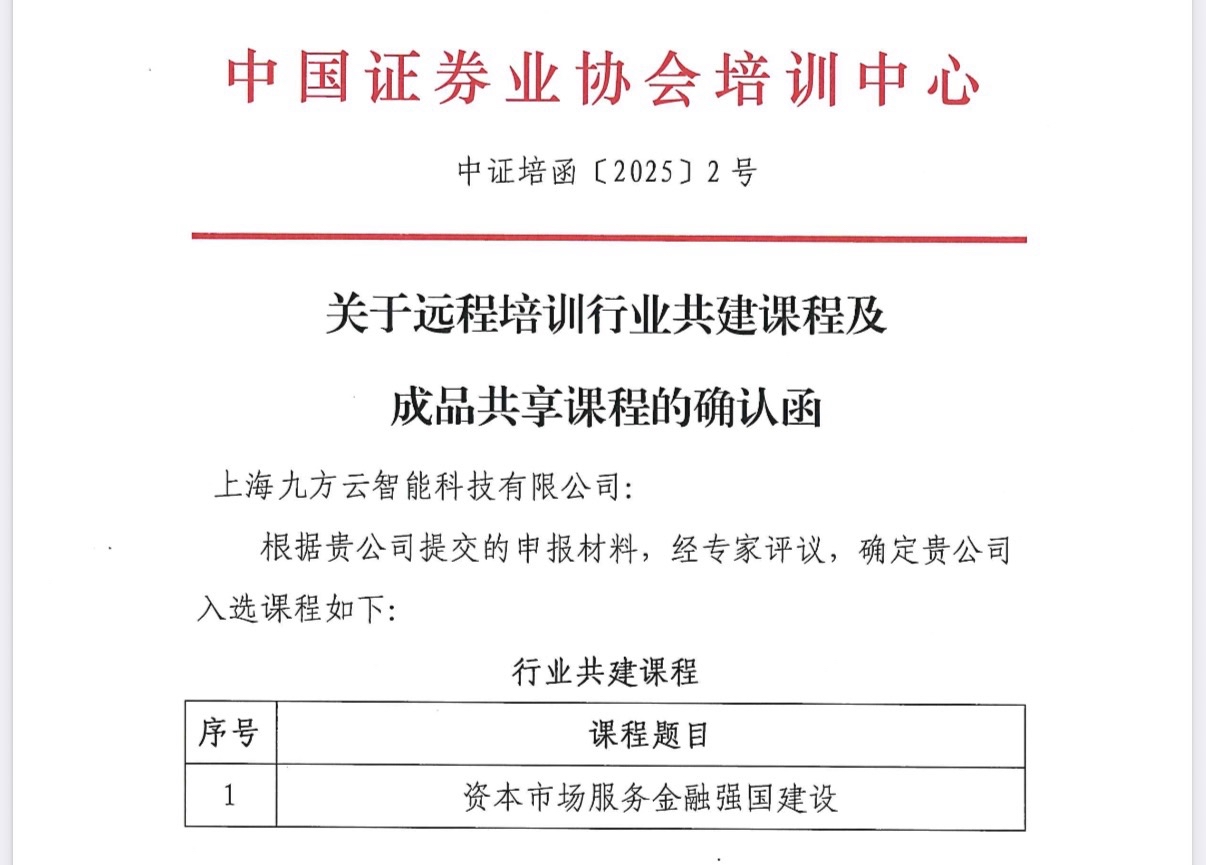 在金融强国战略加速推进的背景下,高质量金融人才的培养已成为支撑资本市场健康发展的核心要素。此前,中国证券业协会培训中心下发《关于远程培训 行业共建课程及成品共享课程的确认函》,九方智投控股有限公司(以下简称"九方智投")报送的课程《资本市场服务金融强国建设》成功入选"行业共建 课程"。 图说:九方智投课程入选中证协共建项目 值得关注的是,这是继此前两次入选后,九方智投第三次获得这一权威认可。"九方智投研发这门课程,正是希望帮助从业人员跳出技术细节,建立起对金 融体系、产业演进与国家战略之间联动关系的系统性认知。只有理解了'为什么要有资本市场',才能真正做好'如何用好资本市场'。"九方智投总经理、九方 金融研究所所长程伟在接受《证券日报》记者专访时表示。 立足国家战略 打造兼具高度与深度的行业课程 | 序号 | 课程题目 | | --- | --- | | | 资本市场服务金融强国建设 | 以专业立身 持续输出可信赖的投教价值 事实上,此次课程入选中证协共建项目,也标志着九方智投的内容能力获得了行业最高层级的专业背书。根据中证协要求,入选课程需经公司合规部门审 核,并由培训中心统筹制作上线,相关师资与制作费用均 ...