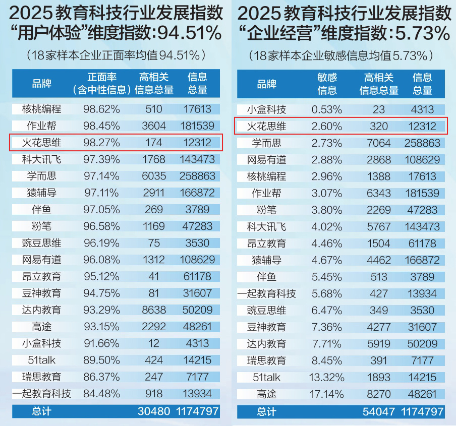 2025教育科技行业发展指数发布 火花思维位居“用户体验”“企业经营”两大维度前三