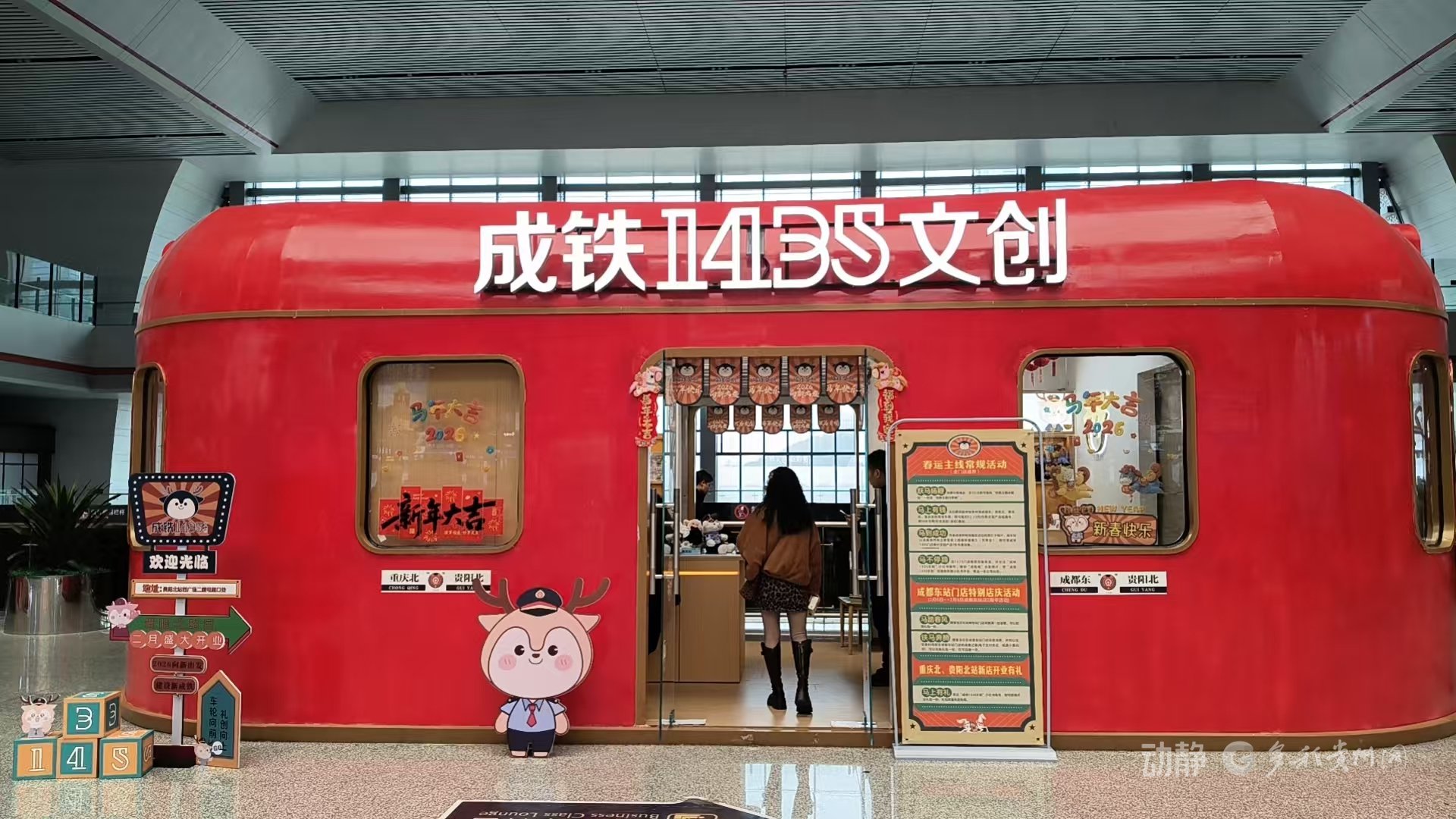 2026年春运旅途正浓,2月6日,贵阳北站候车大厅里多了一处文创打卡地——"成铁文创",这个融合铁路文化与贵州灵秀风情的文创空间,让"候车即逛 展"的全新体验照进现实。 记者在现场看到,店内的文创产品兼具实用价值与文化内涵,看得人眼花缭乱。还原度极高的合金电动复古火车模型,仿佛把铁路文化握在掌心;具有代表 性的原创铁路IP形象"成路鹿"系列周边,无论是软萌的玩偶还是富有质感的冰箱贴钥匙扣都格外吸睛;还有造型逼真的动车笔,笔身复刻了高铁车头的流线 型设计,书写顺滑流畅,兼具颜值与实用性……每一件都承载着铁路发展的历史底蕴与西南地区的人文魅力。 "很荣幸能看到我们设计的文创产品受到大家的关注,我们希望继续当好铁路文化的传播者,为旅客朋友提供更优质、更多元的产品选择。"成铁传媒公司文 化产业部相关负责人说道。 走进门店,复古列车的氛围感与铁路文创的活力扑面而来,仿佛踏入一节满载惊喜的文创专列。红亮的流线型车身复刻着老铁路的记忆,车窗式的通透展陈 区将文创好物一一呈现,红色调的车身搭配明亮的自然采光,让整个空间明快又温馨;车内萌趣的铁路IP形象环绕顶部一圈,细节里满是铁路文化的独特韵 味。 作为优化旅客出行文化供给的 ...