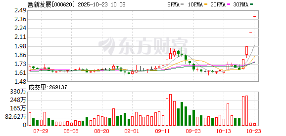 龙虎榜数据显示,该股因连续三个交易日内,涨幅偏离值累计达20%上榜龙虎榜1次,买卖居前营业部 中,机构净买入3026.67万元,深股通累计净买入3940.92万元,营业部席位合计净卖出6944.70万元。 盈新发展盘中涨停,已连收4个涨停板,截至9:27,该股报2.40元,换手率0.16%,成交量746.38万股, 成交金额1791.31万元,涨停板封单金额为15.20亿元。连续涨停期间,该股累计上涨46.34%,累计换手 率为13.14%。最新A股总市值达140.92亿元,A股流通市值112.12亿元。 近日该股表现 | 日期 | 当日涨跌幅(%) | 换手率(%) | 主力资金净流入(万元) | | --- | --- | --- | --- | | 2025.10.22 | 10.10 | 0.64 | 3270.20 | | 2025.10.21 | 10.00 | 6.21 | 6012.20 | | 2025.10.20 | 9.76 | 6.13 | 9954.03 | | 2025.10.17 | -2.38 | 1.56 | -1251.19 | | 2025.10.16 | -2.33 | ...