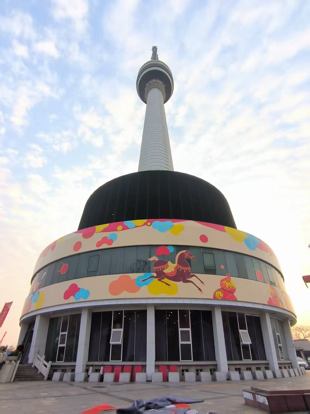4个昼夜赶工!龟山电视塔塔身900平 “骏马送福” 墙绘上新
