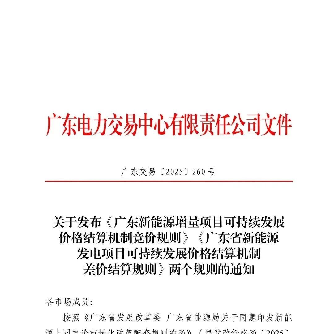文 | 广东电力交易中心 1 0月16日,广东电力交易中心发布《广东新能源增量项目可持续发展价格结算机制竞价 规则》、《广东省新能源发电项目可持续发展价格结算机制差价结算规则》两个规则的通 知。 根据实施方案设置机制电量申报比例上限、机制电价申报上下限, 集中式光伏和陆上风 电项目不参与竞价,在参与竞价的项目中,110千伏以下电压等级项目的竞价电量申报比 例上限取80%, 其他项目的竞价电量申报比例上限原则上与存量项目机制电量比例上限 保持一致;若竞价周期内新能源项目存在已成交的中长期交易电量、绿电电量,相应调减 新能源项目竞价申报比例上限。 增量项目机制电价的执行期限为海上风电项目14年、光伏项目12年,到期后不再执行机 制电价。 增量项目参与竞价成功后,未投产项目的执行起始时间按照竞价时申报的投产 时间确定;已投产项目按照入选时间确定。增量项目执行机制电价前必须具备"四可"(可 观、可测、可调、可控)条件且已投产。 《广东省新能源发电项目可持续发展价格结算机制差价结算规则》 提到,新能源机制电 价差价费用, 以自然月为周期出具结算依据并开展电费结算。 关于结算电价, 执行机制电量差价结算机制的新能源项目, ...