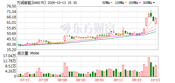 万润新能大宗交易成交10.00万股 成交额632.10万元