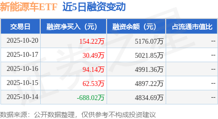 新能源车ETF:10月20日融资净买入154.22万元,连续3日累计净买入278.85万元