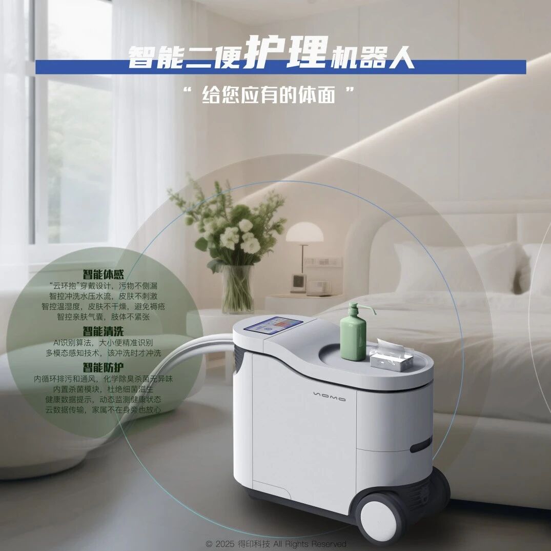 Core Insights - Shanghai DeYin Technology Co., Ltd. has completed a multi-million Pre-A round financing, exclusively invested by Songlin Venture Capital, a member of the listed company Songlin Technology Group, indicating market recognition of its technological strength and business prospects in the smart elderly care robot sector [1] - The financing will primarily be used for the mass production of smart nursing robots and autonomous wheelchairs, product iteration of AI companion robots, and global market channel development [1] Group 1: Company Achievements - DeYin Technology has been recognized in the first batch of the "Smart Elderly Care Service Robot Pairing Attack and Scene Application Pilot Project" jointly released by the Ministry of Industry and Information Technology and the Ministry of Civil Affairs [1] - The company was selected in Tencent's 2025 Silver Technology Partner Program from nearly 200 enterprises nationwide, receiving special funding and various resource support [1] Group 2: Product Offerings - The company has accumulated over 100,000 kilometers of safety testing data in elderly care scenarios and is on the verge of mass production of nearly a thousand robots, creating a complete product matrix covering three essential scenarios: mobility, care, and companionship [2] - The EnviBot smart wheelchair robot is the first in the industry to achieve commercial landing, having completed over 100,000 kilometers of safety testing, featuring self-developed intelligent navigation and obstacle avoidance systems [2] - The BioLoo smart nursing robot addresses the core pain points of disabled and semi-disabled elderly individuals by automating waste identification, cleaning, drying, and sterilization, significantly reducing the burden on caregivers and the risk of infection for bedridden patients [4] - The CareBot AI companion robot integrates emotional computing and large language model technology, offering six core functions including emotional dialogue, health monitoring, home safety, and autonomous movement, providing comprehensive personalized care for the elderly [6]