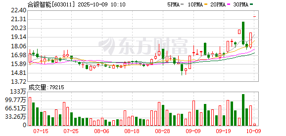 合锻智能再度涨停,8个交易日内录得4个涨停,累计涨幅为27.48%,累计换手率为112.82%。截至 9:25,该股今日成交量173.78万股,成交金额3757.08万元,换手率0.35%。最新A股总市值达106.89亿 元。 证券时报·数据宝统计,两融数据来看,该股最新(9月30日)两融余额为5.46亿元,其中,融资余额 5.46亿元,较前一个交易日增加9281.03万元,环比增长20.49%,近8日累计增加1.74亿元,环比增长 46.87%。 龙虎榜数据显示,该股因日换手率达20%、日涨幅偏离值达7%、日振幅值达15%上榜龙虎榜3次,买卖 居前营业部中,机构净买入2932.43万元,营业部席位合计净买入9866.44万元。 据天眼查APP显示,合肥合锻智能制造股份有限公司成立于1997年09月07日,注册资本49441.4437万人 民币。(数据宝) 近日该股表现 | 日期 | 当日涨跌幅(%) | 换手率(%) | 主力资金净流入(万元) | | --- | --- | --- | --- | | 2025.09.30 | 10.02 | 15.99 | 42723.24 | | 2025.09.29 ...