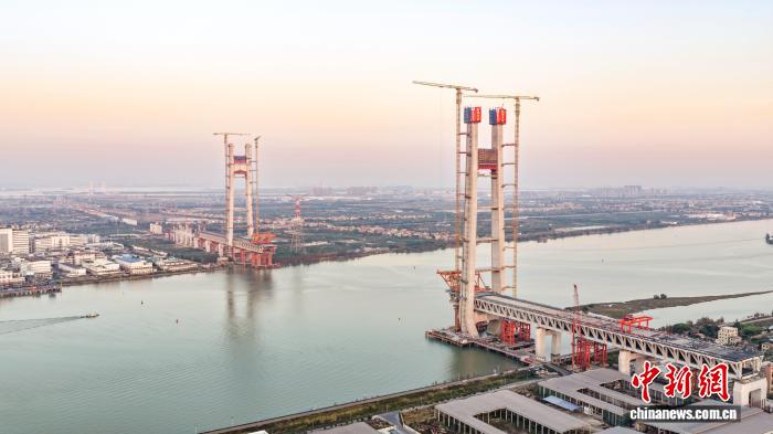 深江铁路洪奇沥水道公铁大桥主塔全部封顶