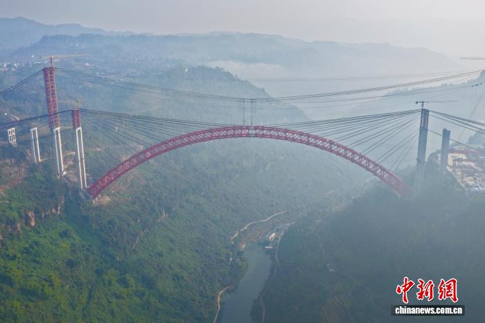 世界跨径最大钢拱桥凤来大溪河特大桥钢桁拱合龙