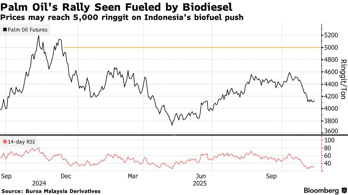 智通财经APP获悉,随着印尼加快推进其生物燃料计划,棕榈油即将迎来一轮牛市行情,原因在于印尼这一举措预计将减少全球最大生产国的出口供应,并 加剧全球棕榈油供应紧张。 据悉,作为全球生物燃料领域领导者的印尼如今计划将更多棕榈油库存用于国内,计划于明年下半年将生物柴油强制掺混率从40%提高至50%。这项所谓的 B50计划是印尼一举降低高昂燃料进口费用和温室气体排放的努力之一。 不过,这一举措叠加全球主要生产国棕榈油产量增长停滞的趋势,可能推高全球价格、扰动植物油流向,甚至在买家被迫转向更昂贵替代品时助长食品通 胀。棕榈油广泛用于巧克力、化妆品等日常用品。过去几个月来,其价格在库存上升与需求不确定之间波动,今年迄今累计下跌6%,目前为每吨4,145林吉 特(约999.61美元)。 BMI高级大宗商品分析师Matthew Biggin指出,随着印尼大幅削减棕榈油出口以实现更高的国内生物柴油掺混比例,全球买家可能被迫寻找新的供应来源。 他表示:"这将需要政府有意进行干预,将国内生物柴油生产置于出口之上,这很可能影响到传统进口市场。" B50计划的推出时机将对市场走势至关重要,并将在本周由Gapki主导的会议上受到密切关 ...