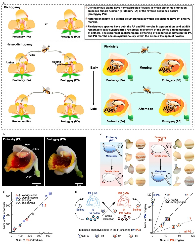 在有花植物中,雌雄异熟是指同一朵花的雌蕊与雄蕊在不同时间成熟,这一机制能有效避免自交、促进异交,从而维持种 群的遗传多样性。但究竟是哪一个遗传"开关"控制了这种异型雌雄异熟?其分子作用机制为何?此前,在科学界,还一直是个 谜。 近期,由云南农业大学、云南大学等多家单位联合完成的一项研究,首次鉴定出控制植物"花柱卷曲性"的关键基因,阐明 了有花植物避免自交、促进异交的分子调控机制。这一发现为理解植物性系统演化提供了新视角,也为作物育种改良提供了潜 在靶点。10月7日,国际权威期刊《自然·植物》在线发表一项重要研究成果。 山姜属中雌雄异熟性状呈现孟德尔式遗传。 从"花柱运动"现象到基因定位 众所周知,植物"雌雄异熟",主要是避免自花授粉。自达尔文时代起,这一现象就备受关注,但其分子调控机制长期未 明,成为百年谜题。其关键障碍在于多数物种的雌雄异熟类型是固定的,要么雌先熟,要么雄先熟,缺乏可用于遗传学解析的 分离材料。 进一步分析显示,两种花型在该区域存在显著的基因组结构差异,"雌雄异熟决定区"呈半合子结构。与雄先熟相比,雌先 熟在"雌雄异熟决定区"区域多出一段包含完整LTR转座子的大片段插入,而雄先熟在相应位置表 ...