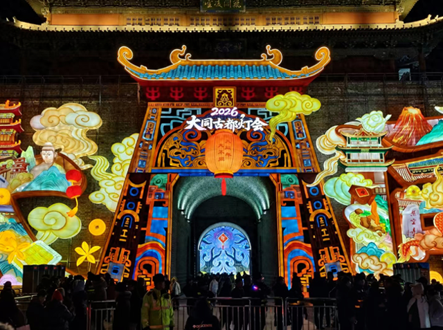 山西大同,暮色里藏着城墙灯影的璀璨,街巷间涌动着社火表演的欢腾……春节假期,从古都灯会到民 俗活动,人们质朴而真切的情愫相互交融,为古城大同的年味奠定了浓烈而温暖的基调。 "以前总觉得大同深厚的历史文化底蕴离我们很遥远,现在通过灯光秀就能感受云冈石窟的造像艺术, 真是太不可思议了!"来自浙江杭州的李然连续3年春节假期来大同观灯,他的感受道出了许多年轻游客 的心声。 这个春节,2026大同古都灯会46组超大型、大型、中型及长卷式特色彩灯,构建起"光影+体验+消 费"全场景链路。《马上福到》的恢宏歌声与城墙壮阔相映;"天马"主灯让北魏战马在科技中"复活"; 《2026黄河民歌春晚》在此录制……这座历史文化名城,用一场融合非遗与现代光影的盛宴庆祝马年新 春的到来。 灯会组委会工作人员介绍,灯会以"万马齐鸣中国年·风起东方耀大同"为主题,设置五大主题区,沿 袭"大同年·大不同"传播主线。本届灯会的一大亮点是7.24公里古城墙及瓮城全线点亮,宛如一条蜿蜒的 巨龙披上华服。这场灯会不仅是一场光影的狂欢,更是一次融合文化深度、科技体验与潮流互动的创新 尝试。 灯组中,云冈大佛、大同古建筑屋顶等大同元素逐一呈现。有以梦为马、 ...
