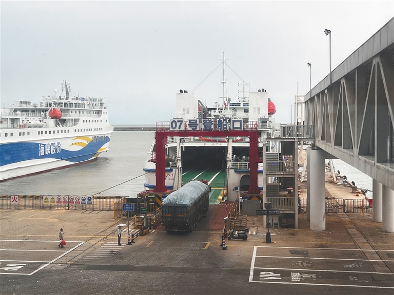 海口新海港泊位处,车辆有序登船。海南日报全媒体记者 郭萃 摄 海南日报全媒体记者 郭萃 台风"麦德姆"影响逐渐消退,琼州海峡于10月6日上午恢复运输。 当天中午12时40分,海口新海港的海风恢复平静,6号与7号泊位前,两条银色的"钢铁通道"正平稳架在 码头与船舶之间,"信海19"轮与"鹦哥岭"号轮并列停靠,同步开启车辆装车作业。 "我们启动了'泊位+船舶'联动机制,提前梳理待渡车辆信息,优先保障生鲜、民生物资运输车辆。"海南 海峡航运股份有限公司相关负责人表示,复运后港口工作人员全员到岗,通过优化调度流程、增加泊位利用 率,全力打通运输通道,为司机旅客出行和物资运输筑牢保障。 13时40分许,汽笛声响起,满载的"信海19"轮缓缓驶离码头,几名工作人员开始整理绳索,准备迎接新 的船舶到来。不远处的待渡区,新一批车辆仍在有序排队。 码头上,每个人的脚步都未曾停歇,他们忙碌的身影,也让等待归家的司机旅客多了一份安心与期待。 (本报海口10月6日讯) "往前挪半米,方向回正。"身着反光背心的调度员站在车头侧方,手持对讲机精准引导,每辆车有序驶 上甲板,轮胎碾过防滑钢板发出"哐当"声,整个过程衔接紧密,没有多余停顿。 ...