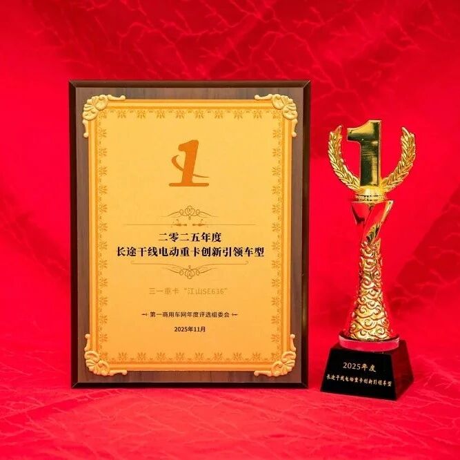 11月25日,"2025第一商用车网年度评选"颁奖典礼上,三一重卡江山SE636纯电动牵引车 凭借在长途干线运输领域的卓越创新表现,从众多参赛车型中脱颖而出,成功斩获"2025年度 长途干线电动重卡创新引领车型"大奖。 "2025第一商用车网年度评选"由第一商用车网、卡车空间站和皮卡空间站联合主办,致力于 以专业的态度发掘商用车行业中的优秀品牌和产品,树立标杆企业,推动行业健康发展。本次 评选本着专业、权威的宗旨,从多个细分领域全面发掘商用车领域的创新力量。 轻松满足干线物流需求 作为专为干线快递运输定制化开发的纯电动牵引车,三一重卡江山SE636精准匹配"长距离、 高时效、高可靠、高安全"的运输需求。该车搭载636度超大容量电池组,轻松实现超过500 公里的真实续航里程,足以覆盖大多数长途干线运输场景;采用800V高压电气架构与高达 1000A的兆瓦快充技术,仅需30分钟即可补能300公里,极大缩短了充电等待时间,实现 了"充电运营两不误"的高效运营模式。 动力方面,江山SE636最大输出功率达到640千瓦,持续爬坡能力达15%,最大爬坡度高达 28%。强劲的动力输出确保了车辆在复杂路况和重载工况下的卓越表 ...