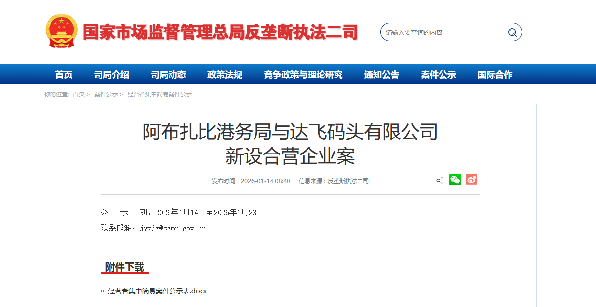 附件下载 公示期:2026年1月14日至2026年1月23日 联系邮箱:jyzjz@samr.gov.cn 转自:市场监管总局网站 ...