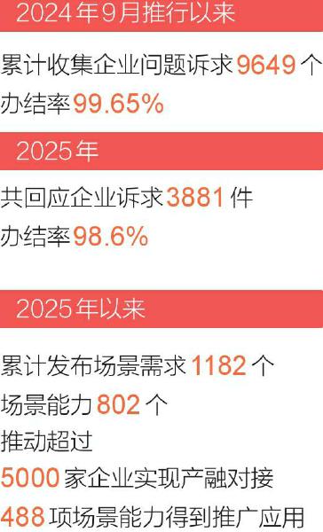 近日,成都"进解优促"工作做法入选工业和信息化部"地方优化中小企业发展环境典型做法"。记者 从成都市经信局市新经济委获悉,这项以"进万企、解难题、优环境、促发展"为核心的服务机制,自 2024年9月推行以来,已累计收集企业问题诉求9649个,办结率99.65%,成为成都持续优化营商环境、 赋能企业高质量发展的重要举措。 不仅回应诉求,成都还通过开放场景,助力各项技术加速走向应用环节。在参加成都机器人与人工 智能实景验证活动后,四川省智能感算芯片与系统技术创新中心的具身智能机器人"小芯"经过迭代升 级,成功在成都自然博物馆"试岗"。2025年以来,成都累计发布场景需求1182个、场景能力802个,推 动超过5000家企业实现产融对接、488项场景能力得到推广应用。 以"进解优促"为抓手,成都市经信局市新经济委还搭建了"成工精销·工业淘宝"全域展销平台,助 力企业拓市场、促交易。目前平台已汇聚5900余家工业企业,上架产品超30000个。自2025年8月试运行 以来,线上交易已超9000单,产业链交易额突破50亿元。 未来,成都还将继续建强民营经济(现代产业)发展促进中心,通过"政企交流服务微信群""进解 优促面 ...