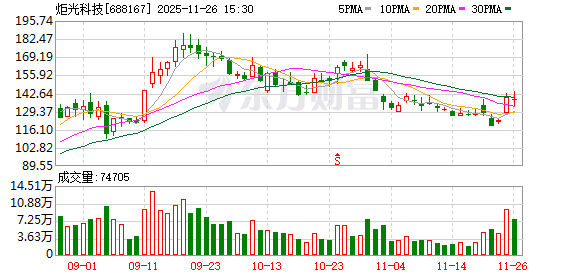 炬光科技股价涨5.21%,蜂巢基金旗下1只基金重仓,持有6266股浮盈赚取4.82万元