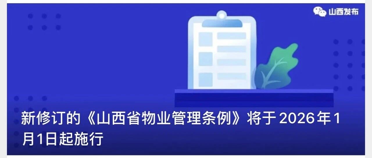 新修订的《山西省物业管理条例》将于2026年1月1日起施行