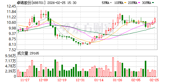 (文章来源:证券日报) 证券日报网讯 2月25日,卓锦股份发布2025年度业绩快报公告称,公司2025年实现营业总收入13143.55 万元,同比减少45.80%;归属于母公司所有者的净利润-5736.64万元。 ...