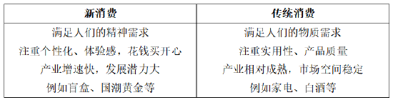 漫画、动画、游戏、偶像及特摄等版权作品衍生出来的二次元周边商品。 2024年,我国谷子经济市场规模达1689亿元,同比增速高达40.6%。 专题:北京公募基金高质量发展系列活动 新时代、新基金、新价值 经过前几年的持续上涨后,消费板块已沉寂许久,而今年以来,新消费强势崛起,成为市场上"最靓的 仔"。本期《投资"建"解》,一起来前排围观当前正流行的新消费。 Q1、什么是新消费? 一代人有一代人的"茅台",所谓新消费,其实是一个相对概念。在传统消费中,其满足的是人们日常衣 食住行方面的物质需求,涉及的行业有家电、白酒、服装等;而新消费更多是满足人们的精神需求,例 如抽盲盒、养宠物等,主打一个提供情绪价值。 | 新消费 | 传统消费 | | --- | --- | | 满足人们的精神需求 | 满足人们的物质需求 | | 注重个性化、体验感,花钱买开心 | 注重实用性、产品质量 | | 产业增速快,发展潜力大 | 产业相对成熟,市场空间稳定 | | 例如盲盒、国潮黄金等 | 例如家电、白酒等 | Q2、新消费包括哪些细分领域? 谷子经济 2025年,市场规模有望增长至逾2000亿元,到2029年或将突破3000亿元。 ...
