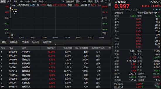 能繁母猪存栏量重回4000万头以下!农牧渔板块开盘大涨,全市场唯一农牧渔ETF(159275)盘中涨超2%!