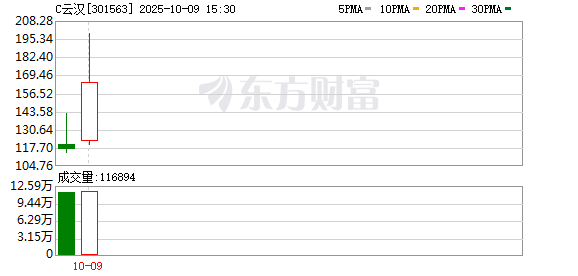 深交所公告显示,C云汉先后两次触发盘中临时停牌,首次临停发生于上午11时21分34秒,临停复牌 后,C云汉继续攀升,较开盘价涨幅达60%,于13时43分12秒第二次触发临停机制,引发市场广泛关 注。 C云汉于9月30日登陆创业板,其简称中的"C"标识代表公司尚处于上市初期的五个交易日内。根据深交 易所规则,新股上市前五个交易日不设涨跌幅限制,当相关股票盘中交易价格较当日开盘价首次上涨或 下跌达到或超过30%及60%时,将触发盘中临时停牌措施,每次停牌10分钟。 消息面上,10月9日上午,云汉芯城官方公众号发布消息称,旗下云汉盛格与嵌入式系统技术知名企业 杜根电子(duagon)达成合作,为轨道交通、医疗器械与关键自动化等系统安全性要求极高的行业客 户,提供稳定、高效、可追溯的计算解决方案。 据悉,杜根duagon是嵌入式通信、计算与控制技术供应商,总部位于瑞士。目前,duagon品牌旗下计算 产品、网络产品和控制设备产品已进驻云汉芯城。 10月9日,次新股C云汉(云汉芯城,301563.SZ)再度成为市场焦点,盘中一度涨超70%,两次触发临 停机制,截至收盘报164.56元/股,全日上涨40.89%。 (文章 ...