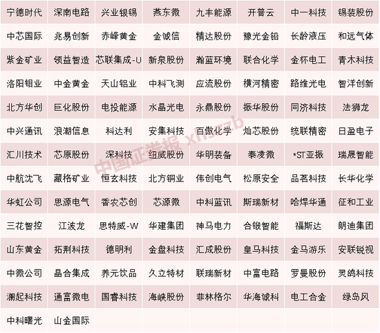 Choice数据显示,不含近一年上市的次新股,本周(有两个交易日,为10月9日至10日,下同),106只 个股股价创历史新高(按前复权价计算,采用涨跌幅复权算法,下同)。今年以来,截至10月10日,不 含近一年上市的次新股,918只个股股价创历史新高,去年同期为82只。 有色金属板块本周表现亮眼,龙头股股价近期频创历史新高。紫金矿业、兴业银锡、洛阳钼业、藏格矿 业近30个交易日股价创历史新高次数分别为16次、15次、11次、9次。截至10月10日收盘,紫金矿业A 股报30.87元/股,总市值为8204.50亿元。 本周创新高的106只个股中,按照申万一级行业进行划分,电子、有色金属、机械设备行业创新高的个 股较为集中,分别有32只、14只、13只。从上市板块看,主板股票有60只、科创板股票有29只、创业板 股票有16只、北交所股票有1只。 从股价表现看,上述个股中,本周涨幅居前的有灵鸽科技、哈焊华通、合锻智能、灿芯股份、养元饮 品,本周分别上涨29.82%、29.62%、21.02%、17.98%、16.80%。 股价方面,截至10月10日收盘,股价超百元的有27只,收盘股价居前的个股是北方华创、宁德时代、中 ...