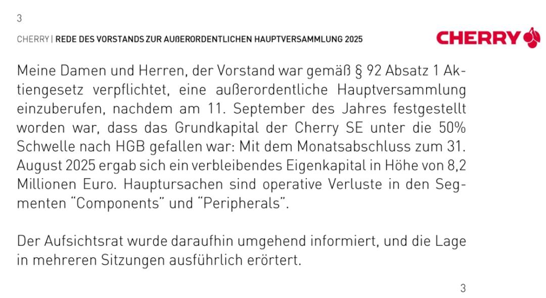 以下文章来源于差评X.PIN ,作者差评君 差评X.PIN . Debug The World,关注科技、数码、汽车、产经、游戏,传播能改变世界的科技互联网信息。 在极致的商业竞争面前, 从未有任何一种信仰可以永恒。 文 | 渡渡鸟战士 编辑 | 莽山烙铁头 面线 来源| 差评X.PIN(ID:chaping321) 封面来源 | cherry官网 如果你了解过机械键盘的话,一定听过这个名字: Cherry 。 2015年,机械键盘刚火起来的时候,大家提到键盘就是Filco,叫一把大F退烧,提到轴体一定是德国Cherry MX轴,这是划分正统跟杂牌的唯一标尺。 从行业信仰到逐渐溃败,需要多久? Cherry的答案是: 10年 。 就在前几天,Cherry临时召开了一场特别股东大会。 因为Cherry SE股本亏损直接到了50%的警戒线以下,造成这一情况的主因,正是组件跟外设板块的经营亏损。 在以往的信息中,他们曾明确提到自己受到了中国市场激烈的竞争威胁。 如今,Cherry依然拥有独特的地位,但轴体市场的传奇,早已被后来者改写,大家谈起它时,也不再是极致推崇,而是 几分感慨、几分怅惘 。 Cherry遗失的十 ...